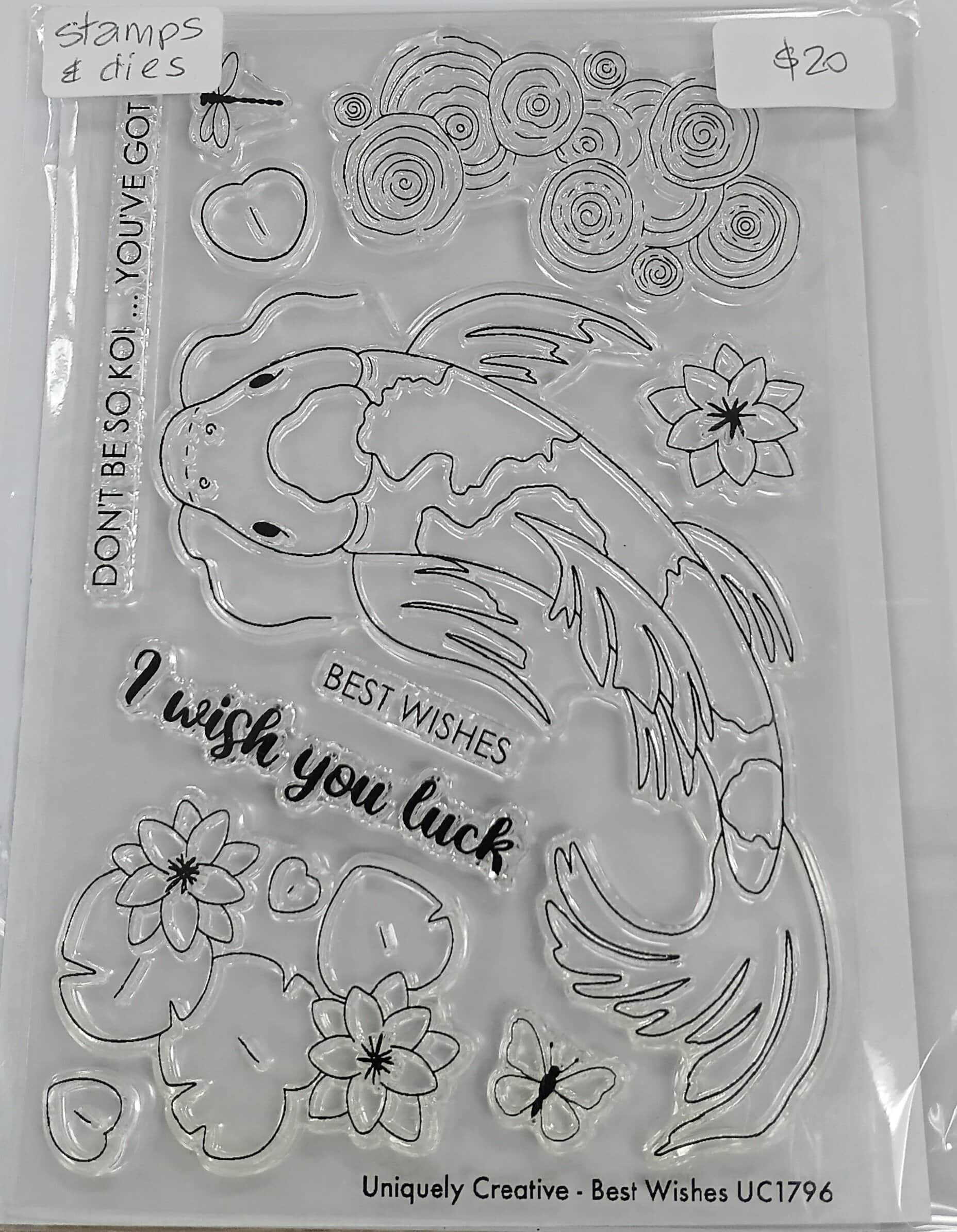 Send strength, serenity, and support with the Best Wishes stamp and matching die stamp set — a beautifully detailed collection featuring a flowing koi fish, floral accents, and uplifting sentiments. With lily pads, circular motifs, and elegant blooms, this set brings harmony and encouragement to every project.