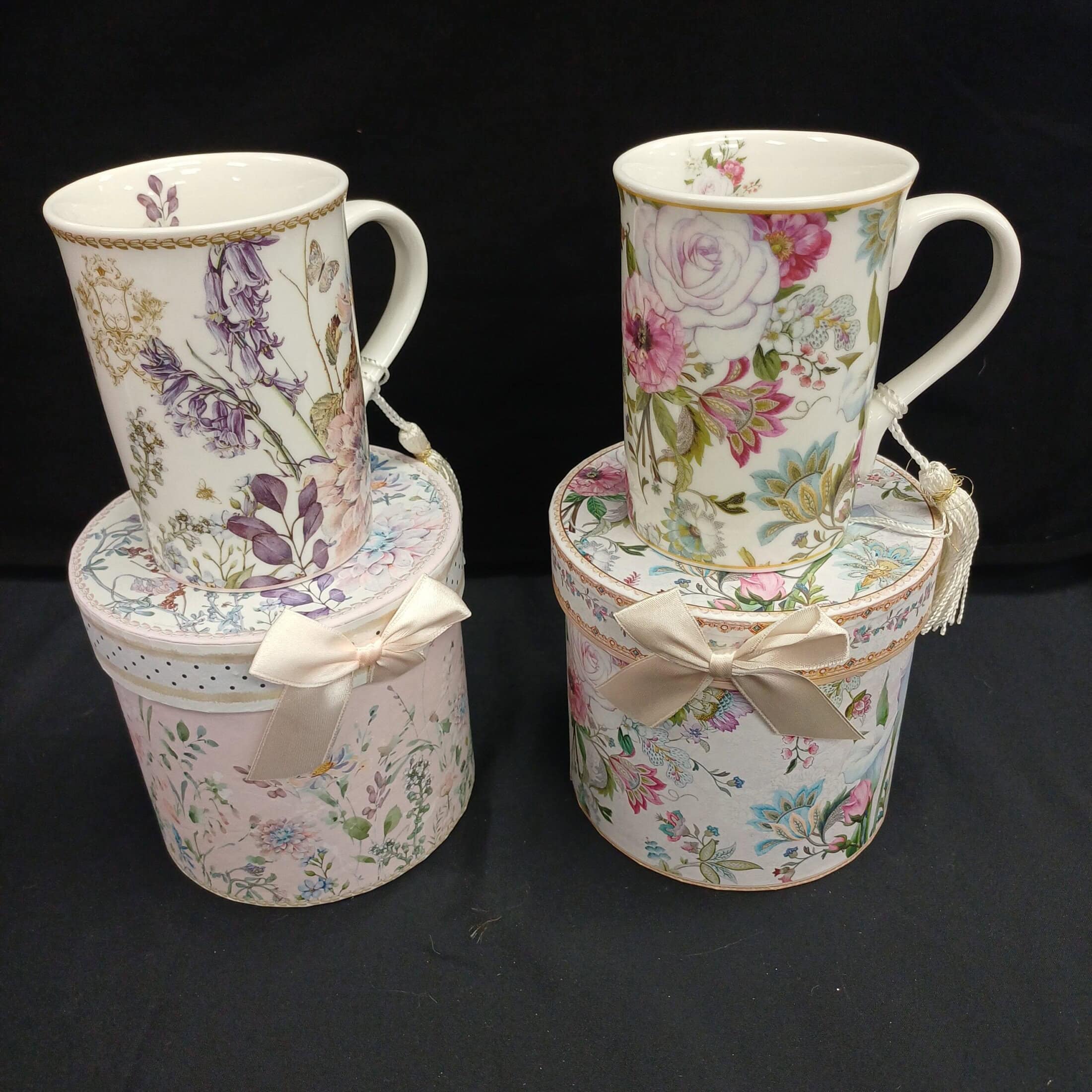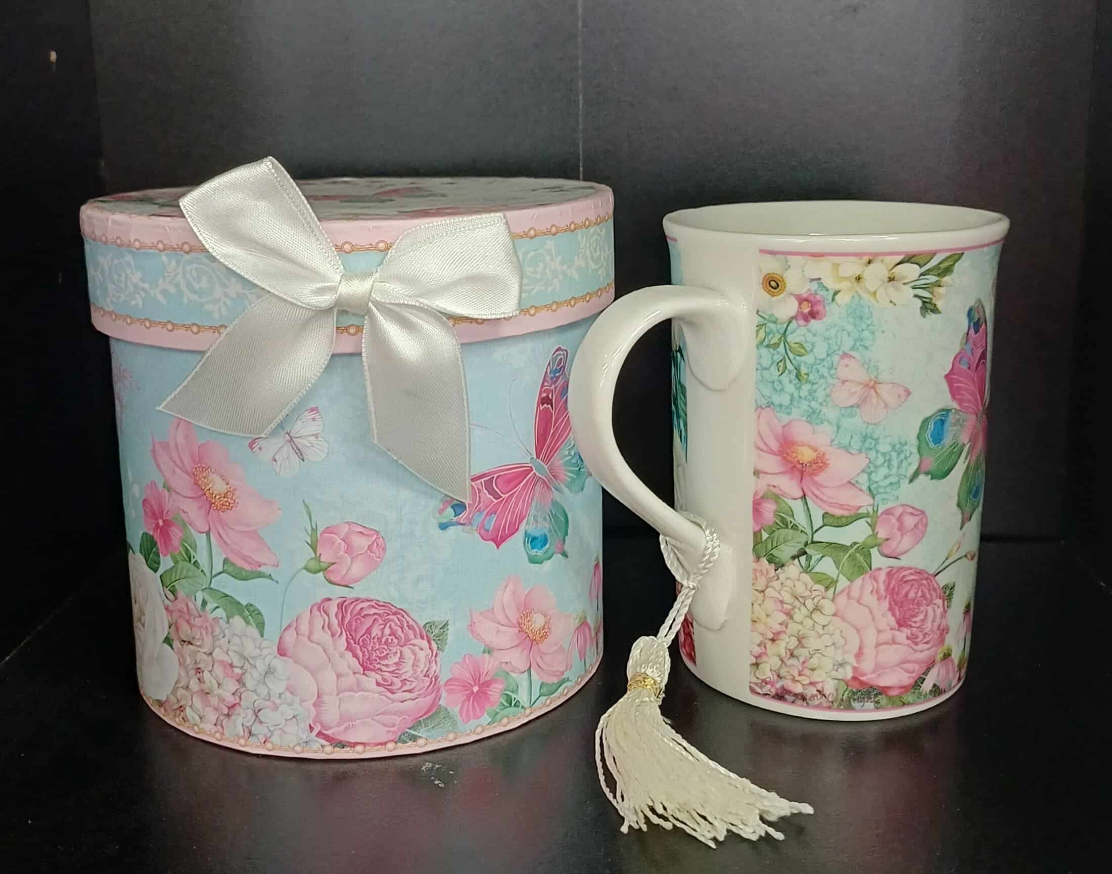 Delight someone special with this beautifully coordinated ceramic mug and gift box set, designed to bring charm and sophistication to any occasion.  Six different sets available in-store.