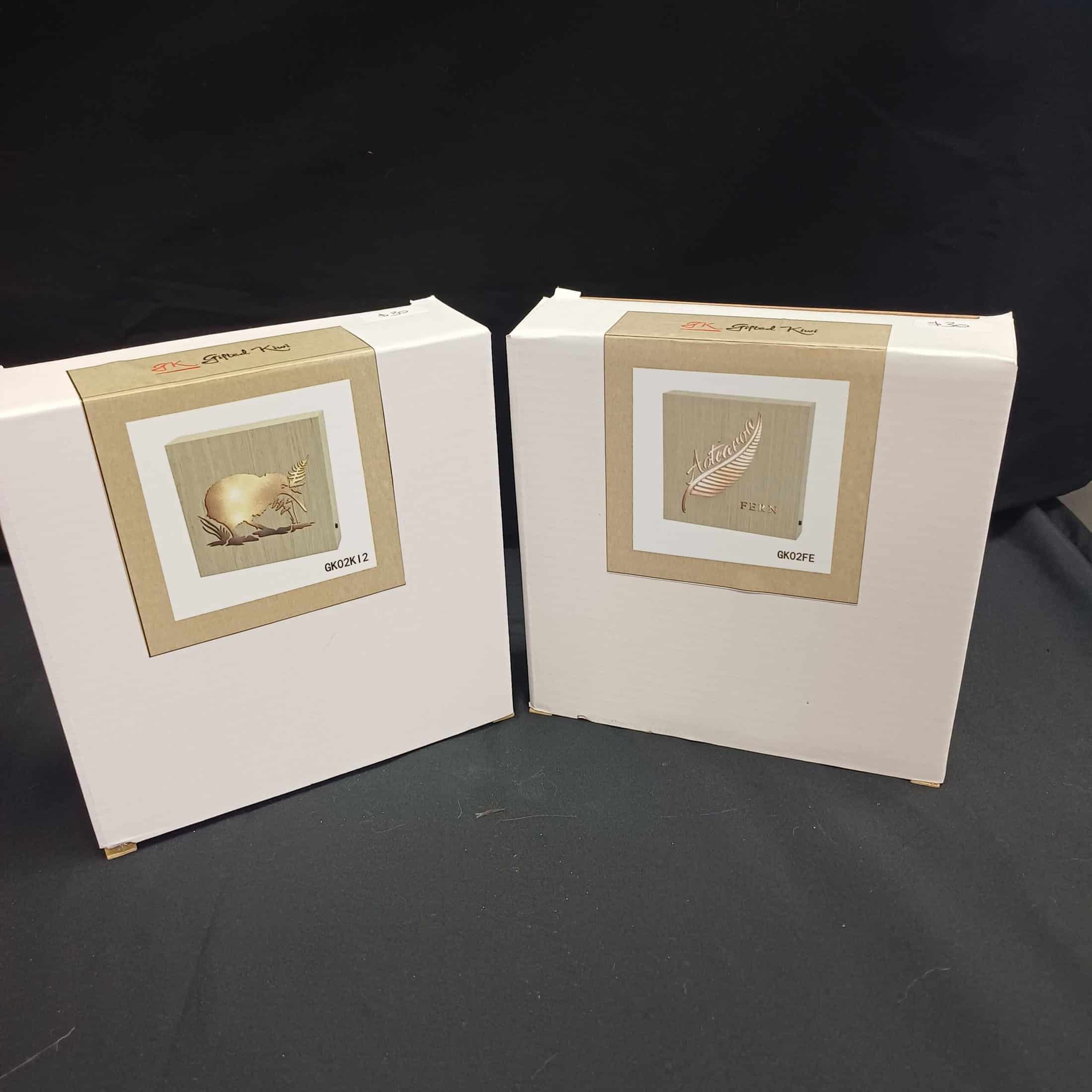 Celebrate Aotearoa’s iconic wildlife and natural beauty with this wooden box featuring a stylized kiwi bird. Set within a circular frame of ferns and native grasses, the design is back-lit with warm white LED’s that contrast beautifully with the natural wood grain.