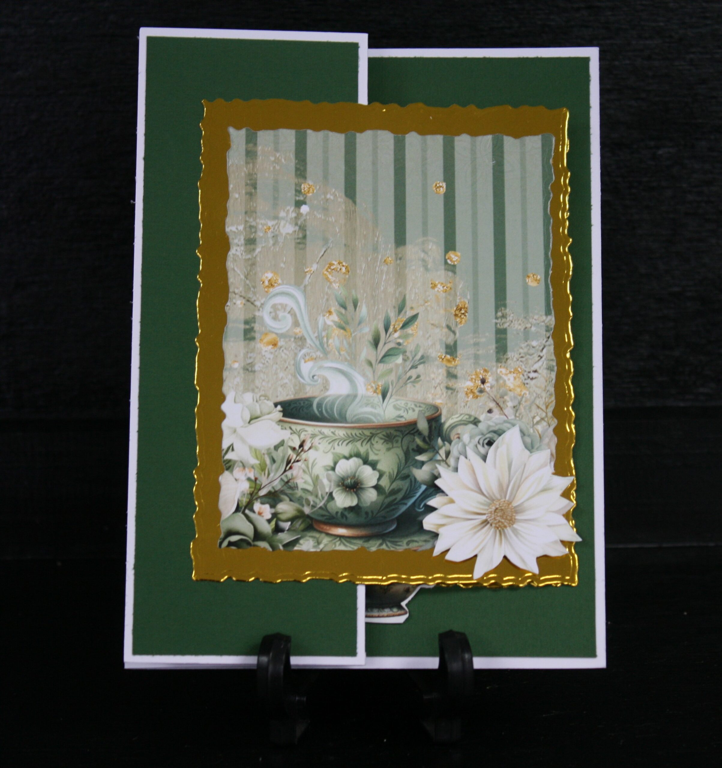 Send a moment of calm with this handmade floral teacup greeting card, featuring layered botanical artwork, soft green tones, and gold accents. Perfect for birthdays, thank‑you cards, thinking‑of‑you messages, and tea‑lover gifts, this elegant card adds a touch of serenity to any occasion. Ideal for shoppers seeking unique handmade cards, botanical stationery, or New Zealand artisan paper crafts.